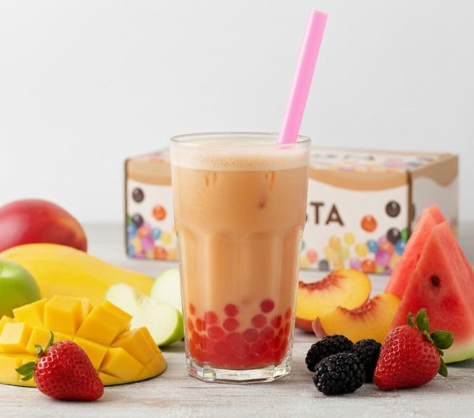 Nos kits utilisent exclusivement des arômes 100% naturels extraits de vrais fruits. Mangue tropicale, fraise gourmande, pomme acidulée... Retrouvez enfin le vrai goût du bubble tea, sans compromis chimique. Parce que vous méritez ce qu'il y a de mieux.