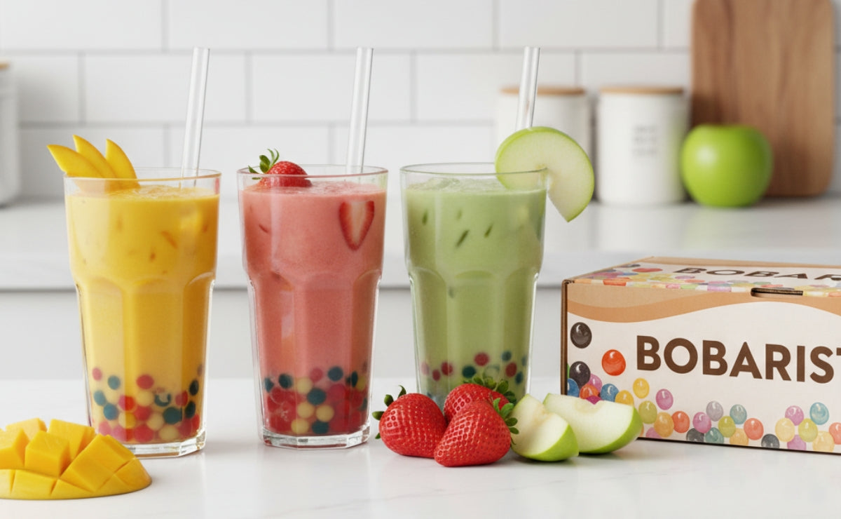 Nos kits utilisent exclusivement des arômes 100% naturels extraits de vrais fruits. Mangue tropicale, fraise gourmande, pomme acidulée... Retrouvez enfin le vrai goût du bubble tea, sans compromis chimique. Parce que vous méritez ce qu'il y a de mieux.