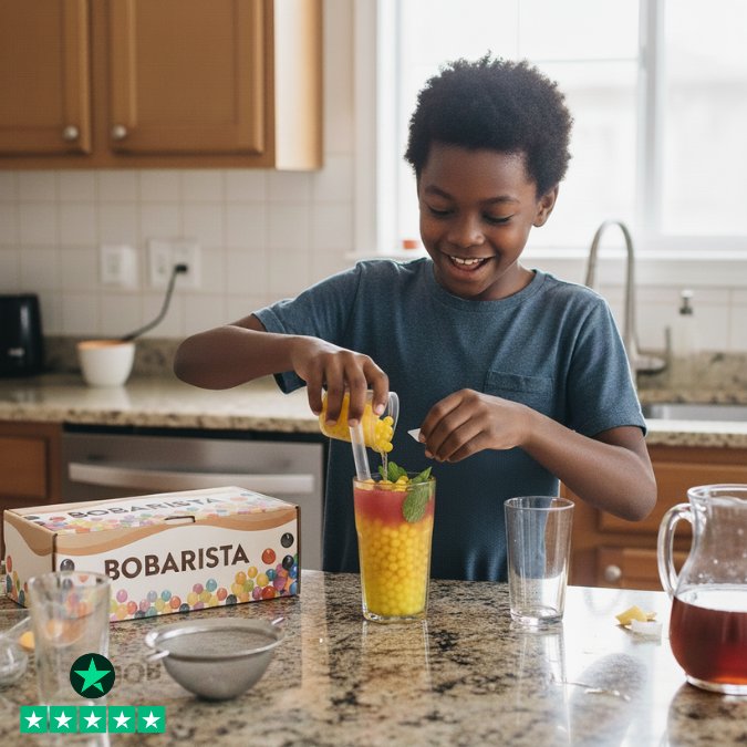 Nos perles sont de qualité professionnelle - les mêmes qu'utilisent nos boutiques partenaires. Elles gardent leur consistance parfaite même après 20 minutes dans le verre, contrairement aux perles fragiles de certains kits low-cost. Julien nous confirme : "Même après 20 minutes dans le verre, elles gardent leur consistance. Mes enfants s'amusent à les aspirer et moi je retrouve le vrai plaisir du bubble tea." Texture optimale garantie !